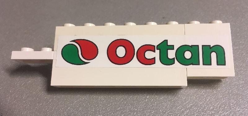 Stickered Assembly 10 x 1 x 2 1/3 with Octan Logo Pattern Model Left Side (Sticker) - Set 6335 - 2 Bricks 1 x 6, 1 Hinge Plate 1 x 4 Swivel, 1 Panel 1 x 2 x 2, 1 Plate 1 x 1, 3 Plates, Modified 1 x 1 with Clip (Vertical Grip)