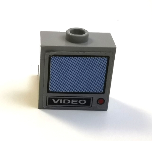 Stickered Assembly 2 x 2 x 1 2/3 with White 'VIDEO', Red Button and Blue Monitor Pattern (Sticker) - Set 5571