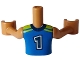 Torso Mini Doll Boy Blue, Lime, and Coral Sports Uniform Shirt with White Collar, Dark Blue Number 1 on Back Pattern, Medium Nougat Arms with Hands
