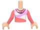 Torso Mini Doll Boy Coral Hoodie, Bright Pink and White Panels, Dark Orange Cat Head Badge Pattern, Medium Tan Arms with Hands with Coral Long Sleeves