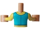 Torso Mini Doll Boy Dark Turquoise Open Jacket with Yellow Side Pockets, Trim and Letter L Badge over White Shirt Pattern, Medium Nougat Arms with Hands with Yellow Long Sleeves