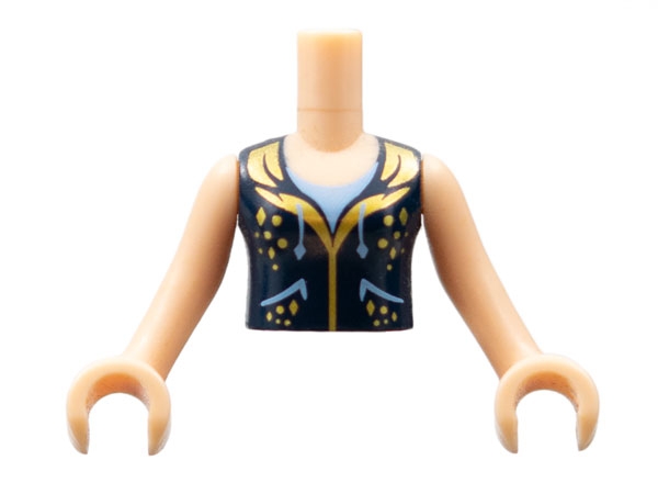 Torso Mini Doll Girl Dark Blue Vest with Gold Trim Pattern, Light Nougat Arms with Hands