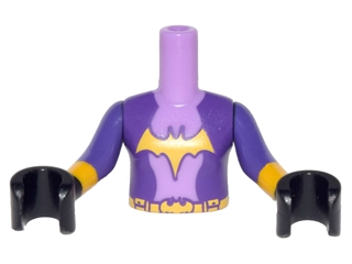 Torso Mini Doll Girl Bright Light Orange Bat Symbol and Belt Pattern, Dark Purple Sleeves with Bright Light Orange Cuffs and Black Hands