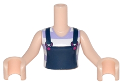 Torso Mini Doll Girl Dark Blue Overalls with Magenta Buckles over White and Lavender Striped T-Shirt Pattern, Light Nougat Arms with Hands