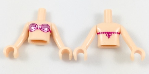 Torso Mini Doll Girl Metallic Pink Bikini Shell Bra Top with Magenta Strap Pattern, Light Nougat Arms with Hands