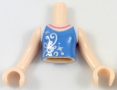 Torso Mini Doll Girl Dark Pink Pearls, Medium Blue Top, White Straps, Silver Filigree Pattern, Light Nougat Arms with Hands (Cinderella)