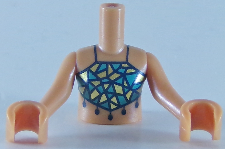Torso Mini Doll Girl Dark Turquoise and Gold Swimsuit Top Pattern, Medium Nougat Arms with Hands