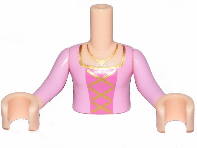 Torso Mini Doll Girl Bright Pink Top, Dark Pink Middle with Gold Lacing Pattern, Light Nougat Arms with Hands with Bright Pink Sleeves
