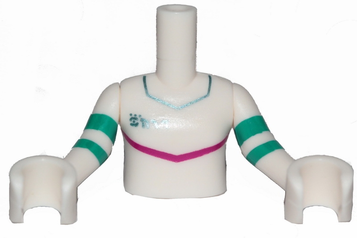 Torso Mini Doll Girl Jumpsuit with Magenta Stripe Pattern, White Arms with Hands with Turquoise Stripes
