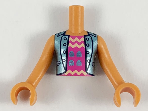 Torso Mini Doll Girl Dark Pink Top with Zigzag Stripes, Blue Jacket Pattern, Nougat Arms with Hands