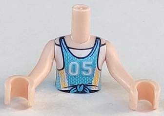 Torso Mini Doll Girl Medium Azure Jersey Top with White Number '05' Pattern, Light Nougat Arms with Hands