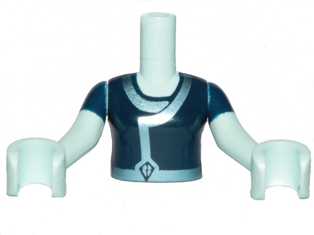 Torso Mini Doll Girl Dark Blue Tunic with Silver Blue Rim Pattern, Light Aqua Arms with Hands with Dark Blue Sleeves