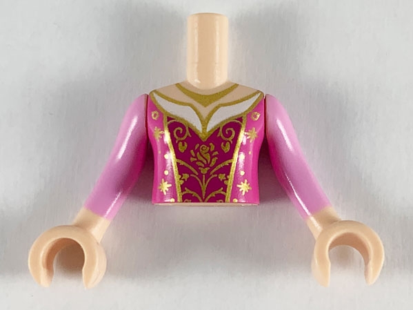 Torso Mini Doll Girl Dark Pink Dress, Magenta Front, Gold Necklace, Filigree Pattern, Light Nougat Arms with Hands with Bright Pink Sleeves