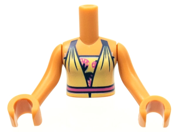 Torso Mini Doll Girl Bright Light Yellow Dress Top with Bright Pink Waist Line over Undershirt with Strawberries Pattern, Nougat Arms with Hands