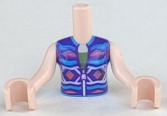 Torso Mini Doll Girl Dark Purple, Dark Pink and Dark Azure Sleeveless Jacket with Zipper Pattern, Light Nougat Arms with Hands