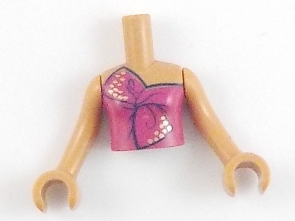 Torso Mini Doll Girl Magenta Strapless Dress Top Tied in Bow with Gold Dots Pattern, Medium Nougat Arms with Hands