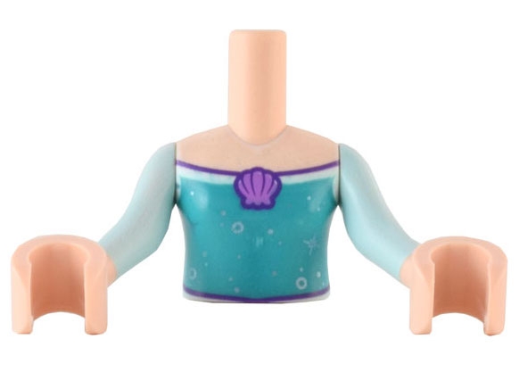 Torso Mini Doll Girl Dark Turquoise Top with Medium Lavender Shell, Circles and Stars Pattern, Light Nougat Arms with Hands with Light Aqua Sleeves