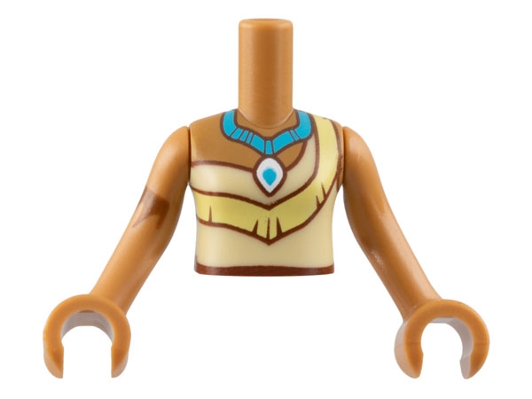 Torso Mini Doll Girl Tan Buckskin Dress, Medium Azure Necklace Pattern, Medium Nougat Arm with Hand Left, Medium Nougat Arm with Hand with Tattoo Right