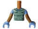 Torso Mini Doll Girl Sand Green Vest with Black Pockets, Collar and Spiked Stripes over Medium Blue T-Shirt Pattern, Medium Nougat Arms with Hands with Medium Blue Short Sleeves and Gloves