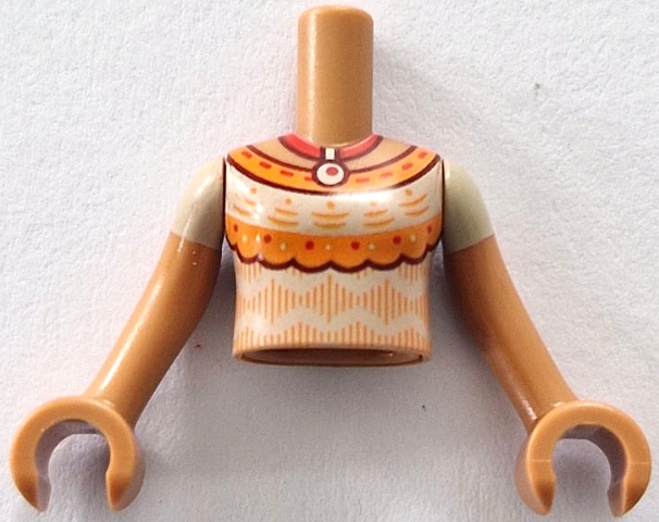 Torso Mini Doll Girl Tan Blouse with Orange Collar and Stripes, Red Pendant Necklace Pattern, Medium Nougat Arms with Hands with Tan Short Sleeves