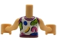 Torso Mini Doll Girl White Tank Top with Dark Pink Trim, Black Lines and Dots and Blue, Lime and Yellow Shapes Pattern, Medium Tan Arms with Hands