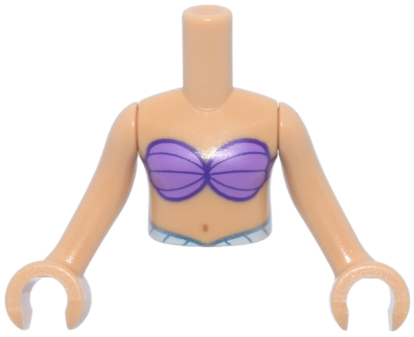 Torso Mini Doll Girl Medium Lavender Bikini Shell Bra Top, Metallic Light Blue and White Belt Pattern, Medium Tan Arms with Hands