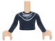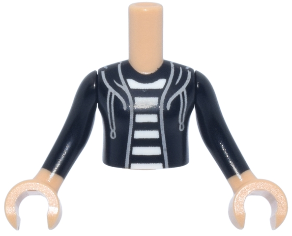 Torso Mini Doll Girl Hoodie with Light Bluish Gray Strings over Black and White Striped Shirt Pattern, Medium Tan Arms with Hands with Black Long Sleeves