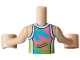 Torso Mini Doll Lime Tank Top with Coral and Medium Azure Print, White Trim and Star Necklace Pattern, Medium Tan Arms with Hands