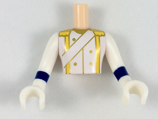 Torso Mini Doll Man White Dress Uniform with Sash, Yellow Epaulettes, Gold Buttons Pattern, White Arms with Hands with Dark Blue Cuffs