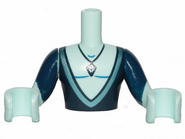Torso Mini Doll Man Dark Blue Top Deeply Cut and Crystal Necklace Pattern, Light Aqua Arms with Hands with Dark Blue Sleeves