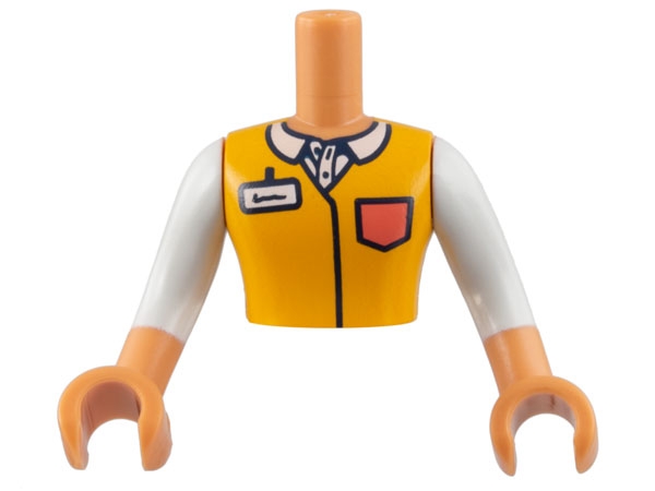Torso Mini Doll Man Bright Light Orange Shirt, White Collar and Badge, Coral Pocket Pattern, Nougat Arms with Hands with White Long Sleeves