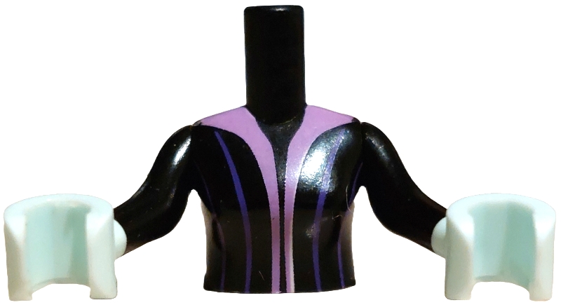 Torso Mini Doll Woman Dress Top with Medium Lavender Trim and Dark Purple Stripes Pattern, Light Aqua Arms with Hands with Black Long Sleeves