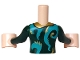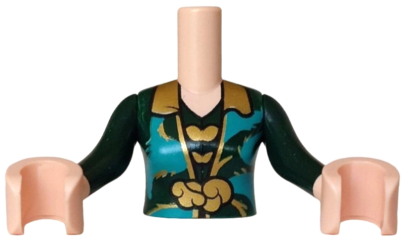 Torso Mini Doll Woman Dark Green Dress Top, Gold Collar, Clasp and Butterflies, Dark Turquoise Fur Insets Pattern, Light Nougat Arms with Hands with Dark Green Long Sleeves