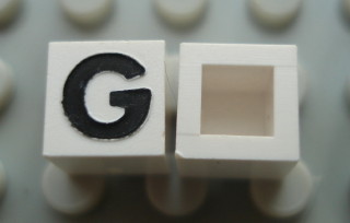 Modulex, Tile 1 x 1 with Black 'G' Pattern (no internal lining)