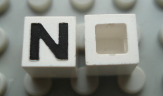 Modulex, Tile 1 x 1 with Black 'N' Pattern (no internal lining)