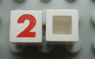 Modulex, Tile 1 x 1 with Red '2' Pattern (no internal lining)