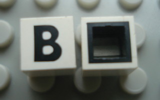 Modulex, Tile 1 x 1 with Black 'B' Pattern (with black lining on sides only)