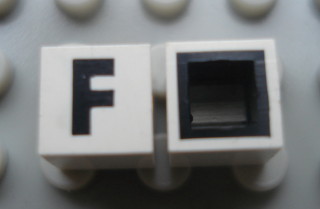 Modulex, Tile 1 x 1 with Black 'F' Pattern (with black lining on sides only)