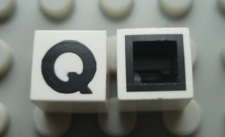 Modulex, Tile 1 x 1 with Black 'Q' Pattern (with black lining on sides only)