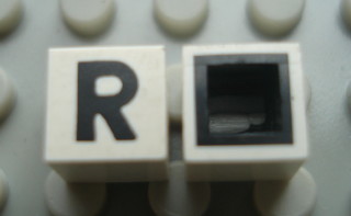Modulex, Tile 1 x 1 with Black 'R' Pattern (with black lining on sides only)