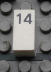 Modulex, Tile 1 x 2 with Black Calendar Day Number '14' Pattern
