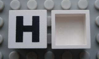 Modulex, Tile 2 x 2 (no Internal Supports) with Black Capital Letter H Pattern