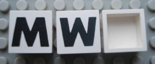 Modulex, Tile 2 x 2 (no Internal Supports) with Black Capital Letter M / W Pattern