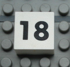 Modulex, Tile 2 x 2 (no Internal Supports) with Black Calendar Week Number 18 Pattern