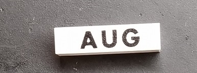Modulex, Tile 1 x 4 with Black Month 'AUG' Pattern