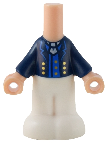 Micro Doll, Body with Molded Dark Blue Top and White Pants and Printed Jacket Open with Lapels and Gold Buttons over Blue Vest, White Ascot Pattern