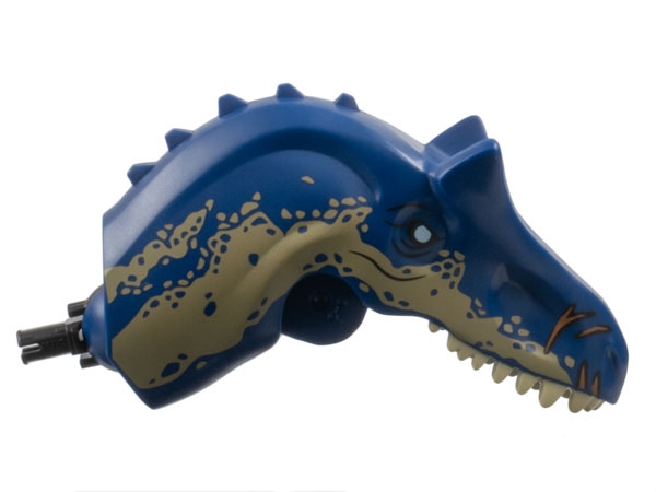Dinosaur Head Allosaurus with Black Rotation Joint Pin with Tan Teeth, Dark Tan Scales and White Blind Right Eye Pattern