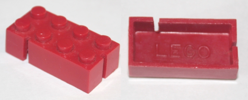 Brick 2 x 4 without Bottom Tubes, Slotted (with 2 slots, opposite corner left)
