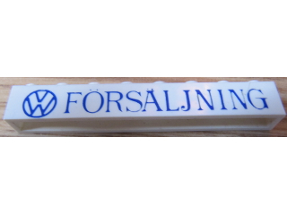 Brick 1 x 8 without Bottom Tubes with Cross Side Supports with Blue VW Logo and 'FÖRSÄLJNING' Narrow Pattern {FORSALJNING}