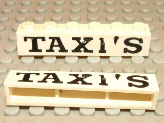 Brick 1 x 6 without Bottom Tubes with Cross Side Supports with Black 'TAXI'S' Serif Bold Large Pattern